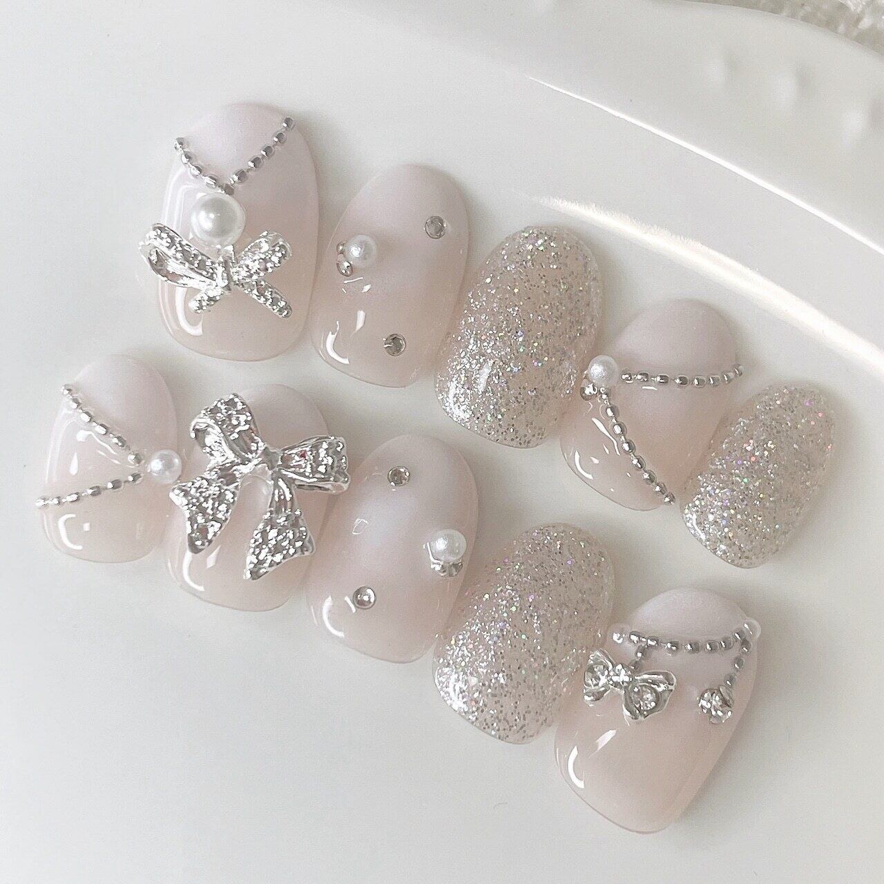 白グラデーションにシルバーパーツが映える♪