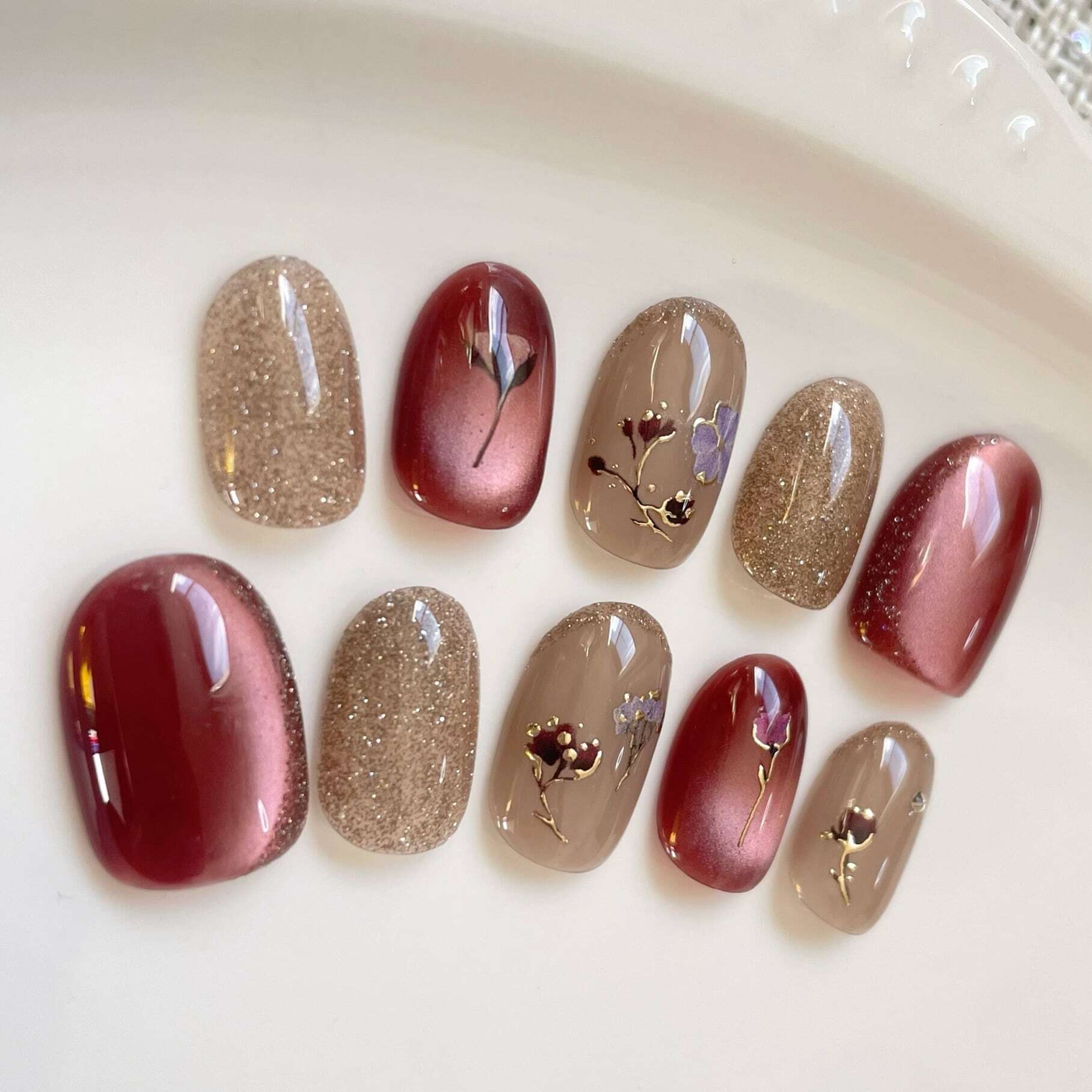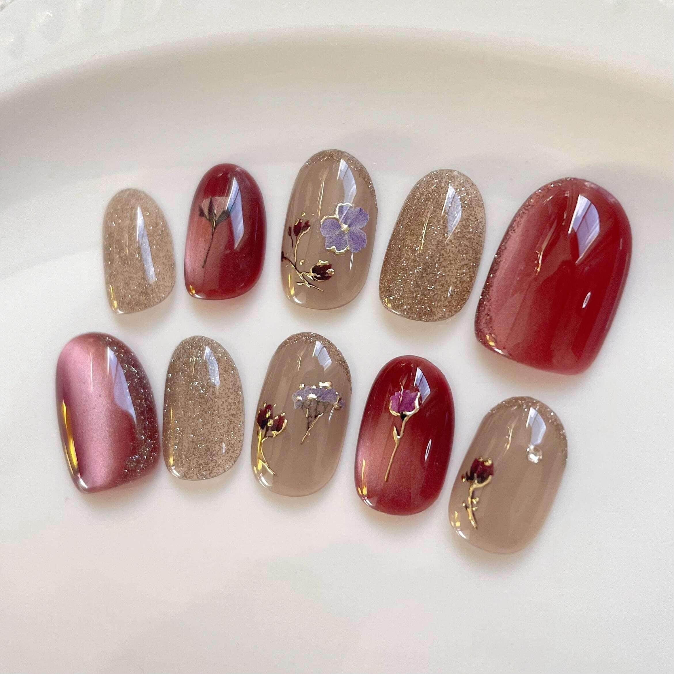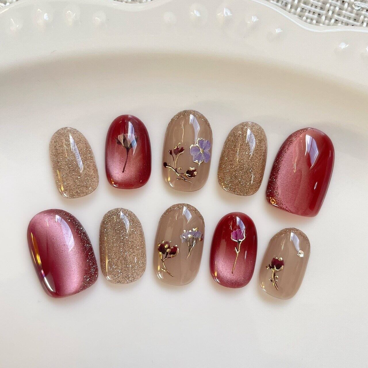 ※お花は爪の大きさに合わせて配置させて頂きますので多少種類や大きさが見本とは異なる場合がございます。あらかじめご了承ください。